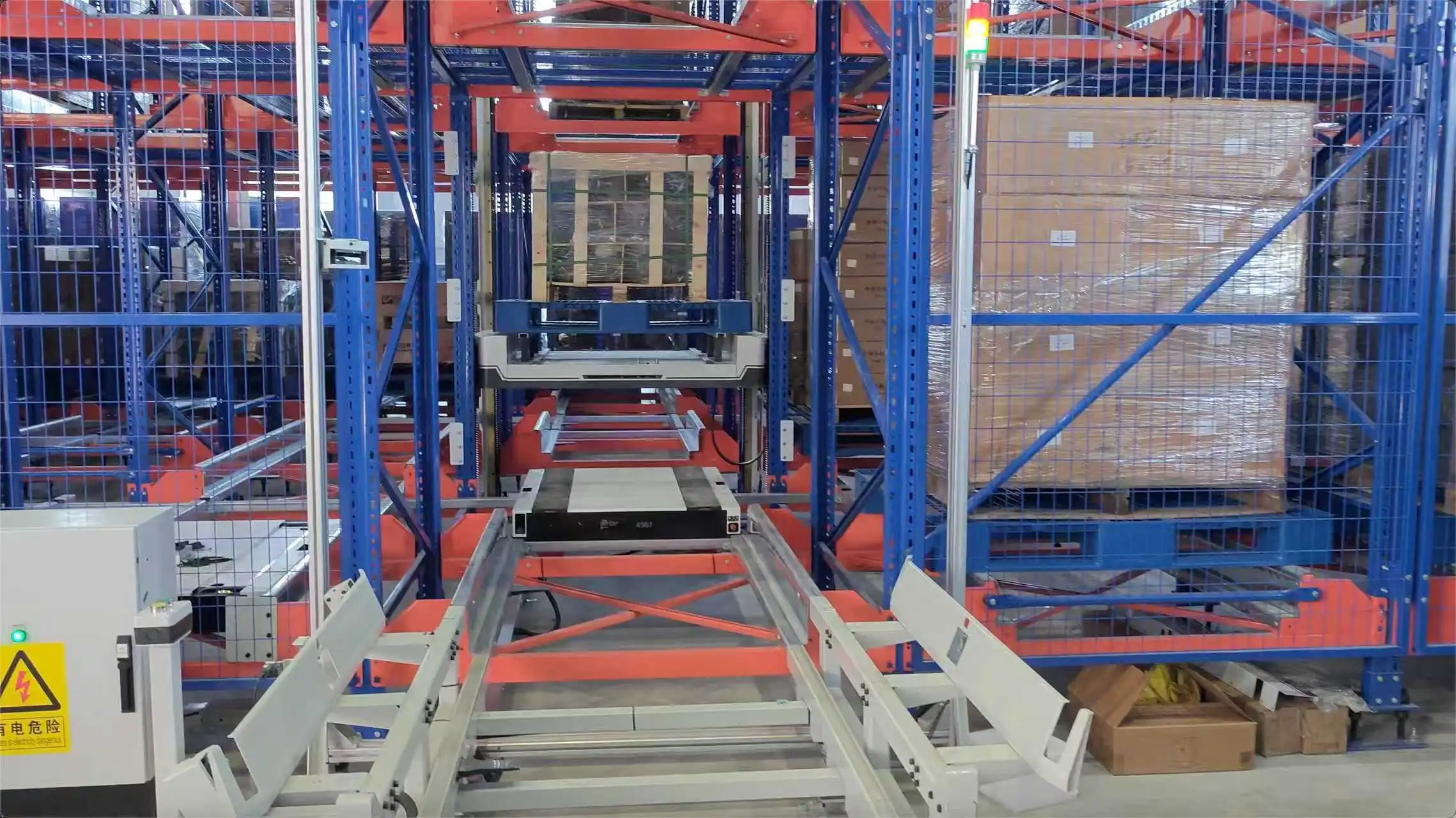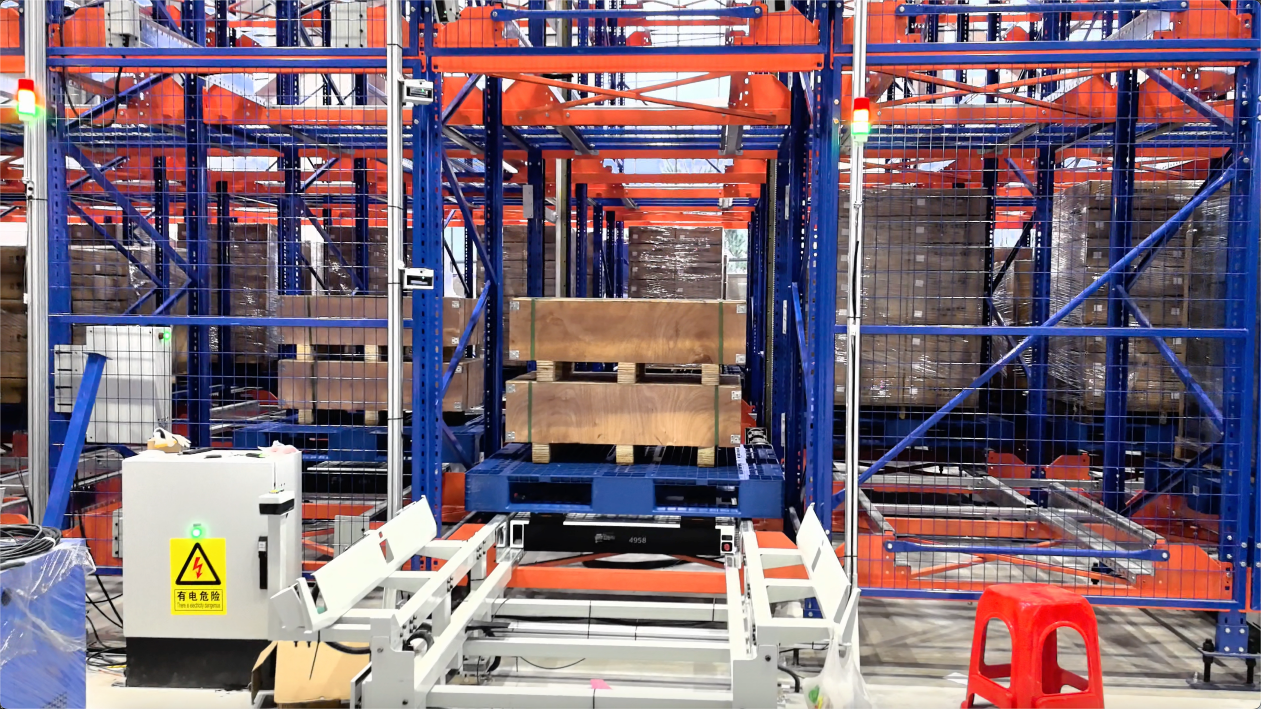 实现多方向自由运行,结合提升机与输送系统,高效完成出入库作业。