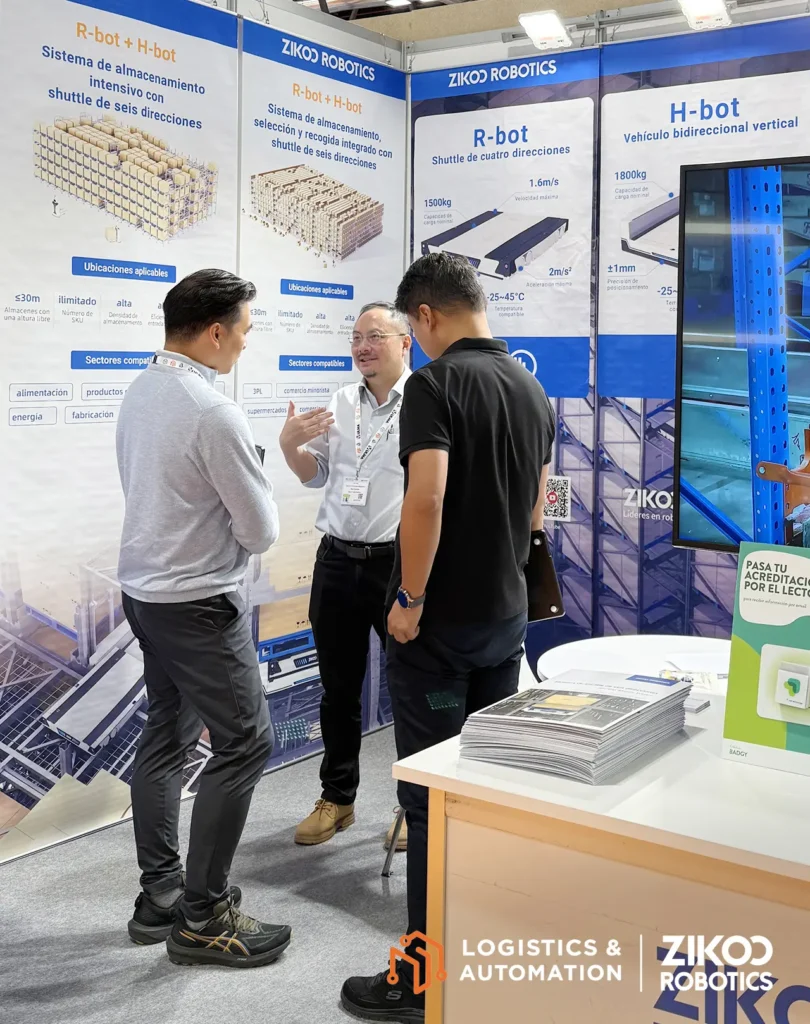 两者协同组成的六向穿梭车系统,凭借高密度、高效率、高柔性的技术优势,成为展会现场人气焦点。