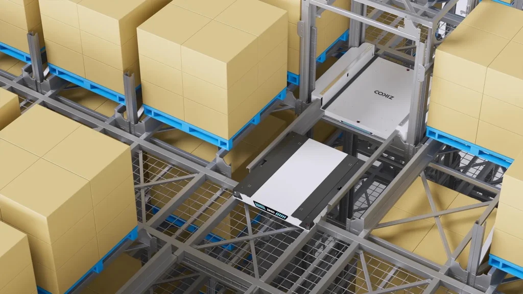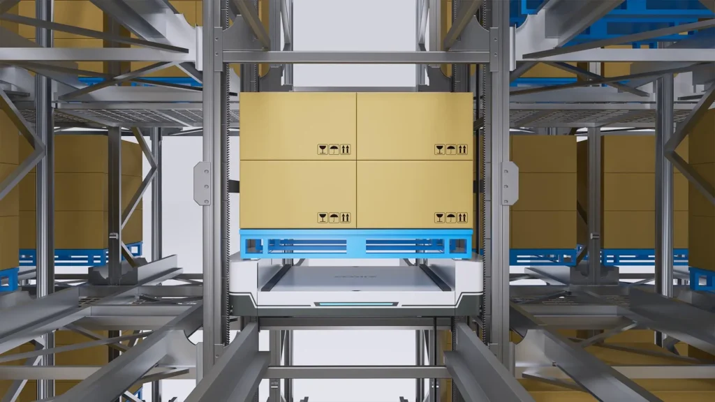 H-bot垂直两向车具备快速升降与灵活部署能力,可替代传统提升机与输送线,支持多层库间的高效物料流转。
